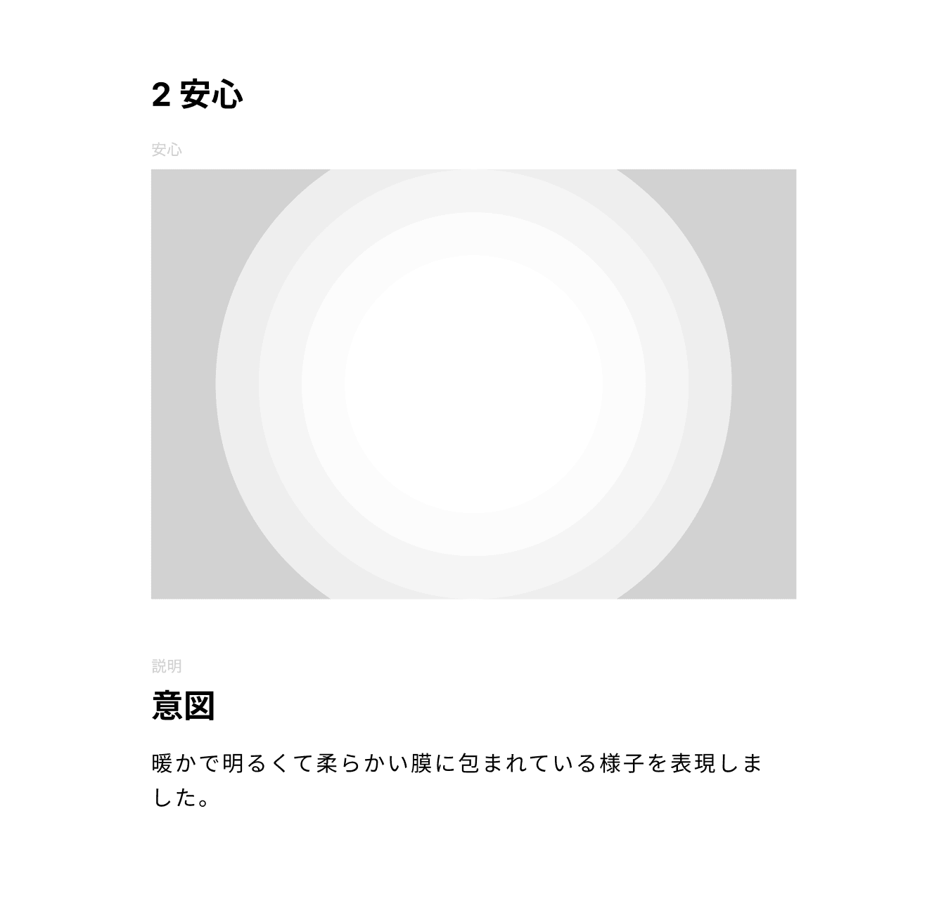 先週の振り返りの「形でつくる違う印象」の課題で、私の経験から表現を起こしていったことで、「自分の経験や感情、影響を受けたものと表現は密接につながっている」と書いたのですが、 「安心」のお題で違和感を感じたので、少し考えてみました。